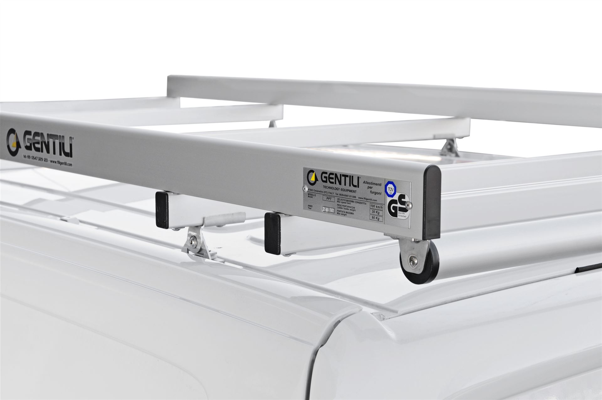 der Dachträger Gentili EAGLE erlauben es extrem leicht Leitern und anderes Material auf das Fahrzeugdach Auf und Abzuladen.