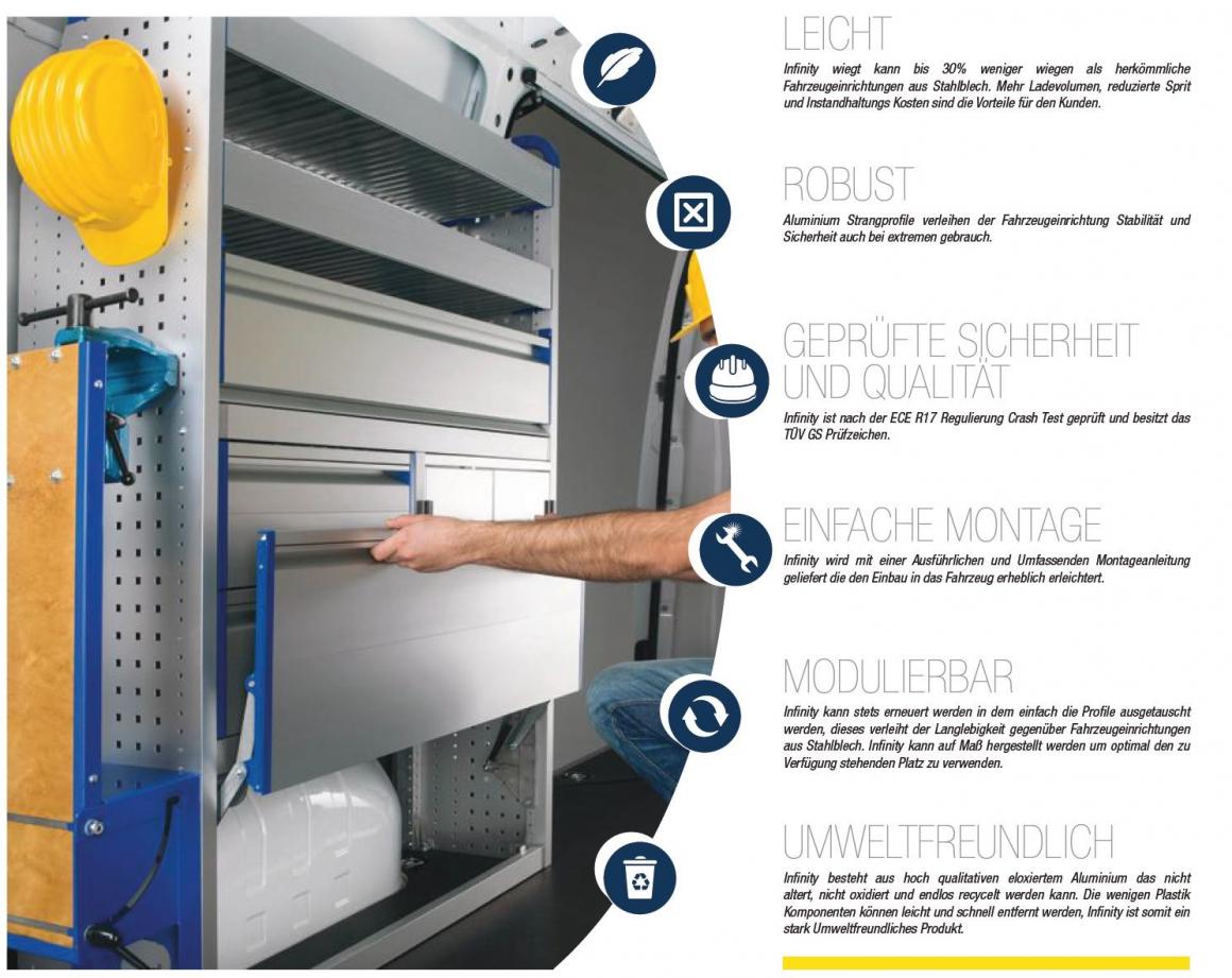 Infinity ist unsere Idee von Fahrzeugeinrichtung, Entwickelt um auch den Anspruchsvollsten Kunden zu befriedigen.